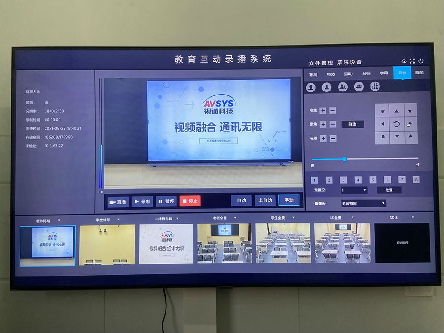 项目包含:本项目共建设1个录播教室,使用1台视通科技(AVSYS)多媒体综合管理一体机,实现统一控制管理,音视频调度,会议室互动等应用。