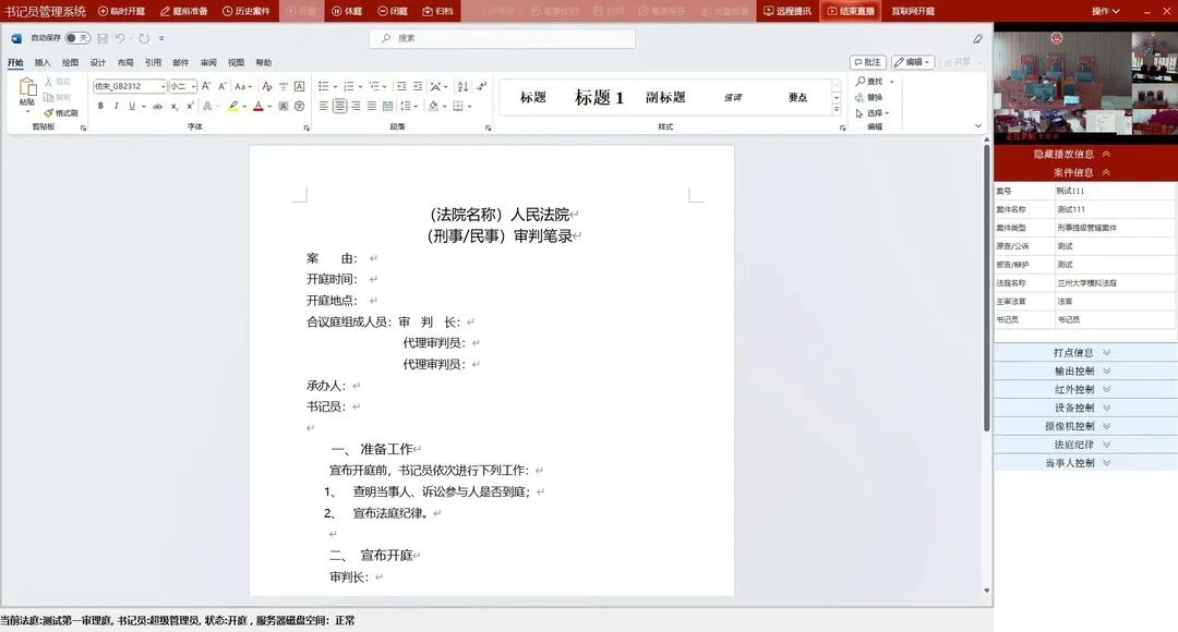 系统应用软件包含了具有核心管理功能的书记员应用客户端,以及为法官和当事人提供笔录和电子证据共享的相应客户端。另一核心应用系统是模拟教学实训系统,用于法学院师生开展模拟审判实训使用,实现案件模拟实训、案件审理角色模拟、审理流程指引、实践案例培训等。
