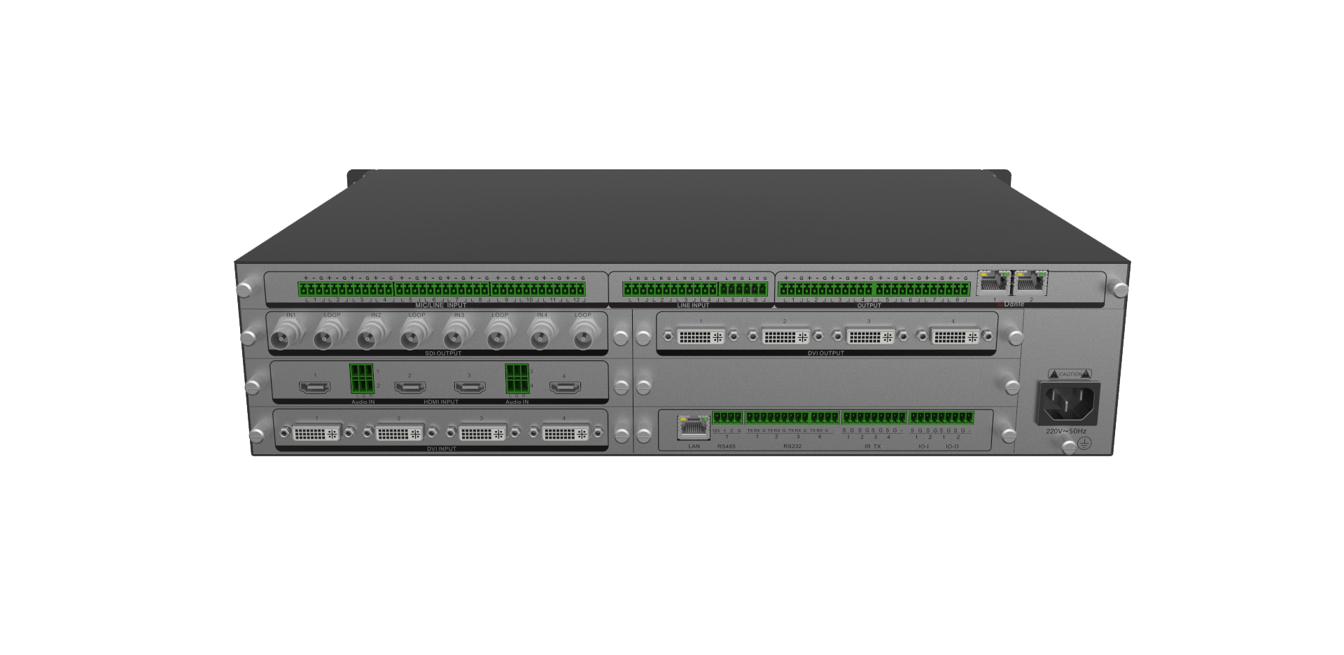 1、机箱19,2.6U高度;DVI-I扩展板卡、插卡式机箱,可扩展VGA、光纤、3G-SDI、HDBaseT、HDMI