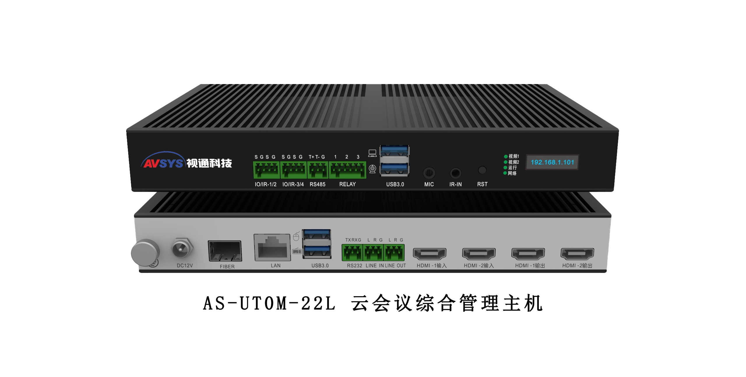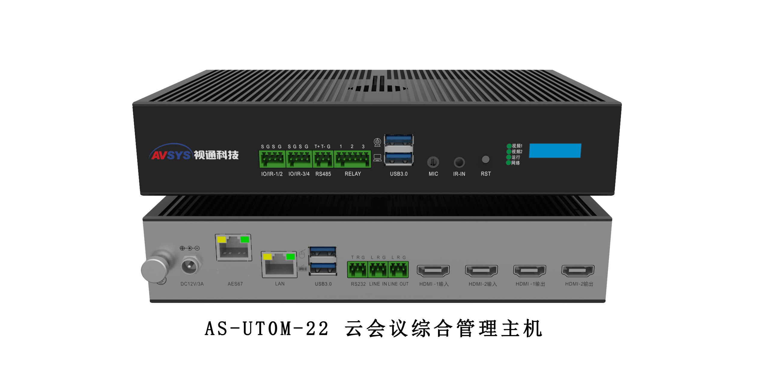 AS-UT0M-22 是一款多功能,支持本地视频切换、本地环境控制、远程音视频会议、互动培训、虚拟场景搭建以及视频录制功能的迷你型综合管理主机。同时设备具备UV/AC数据传输能力,可对接常见的音视频交互软件。主要应用于线上会议、网络教育以及电商等应用场景。