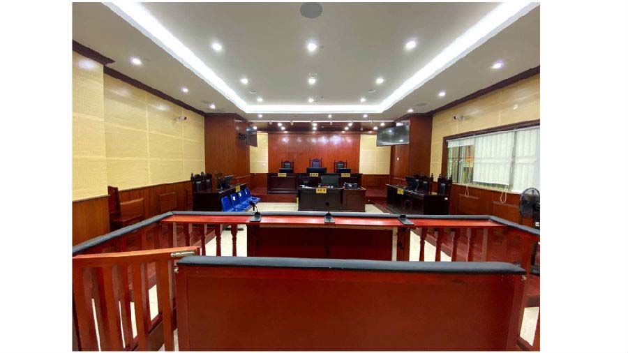 法院专网或互联网实现远程提讯、移动微法庭。